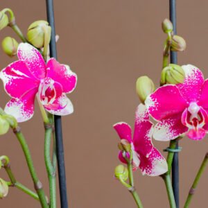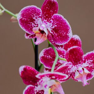 La Barcelona combina un fondo blanco luminoso con un vibrante patrón fucsia que crea una flor moderna, audaz y muy decorativa. Con flores de alta calidad, es una orquídea ideal para quienes buscan un estilo llamativo, fresco y lleno de personalidad.