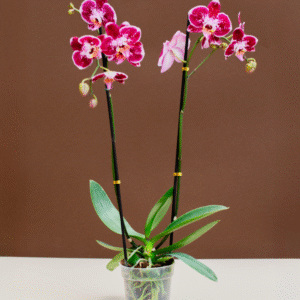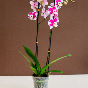 La orquídea Phalaenopsis es un verdadero símbolo de elegancia y armonía. Sus flores, delicadas y perfectamente formadas, parecen flotar como mariposas en el aire, llenando cualquier espacio con un encanto casi mágico. Es la planta ideal para regalar a alguien especial, transformar un rincón de tu hogar en un pequeño oasis o añadir un toque sofisticado y sereno a tu oficina o a tu lugar favorito.