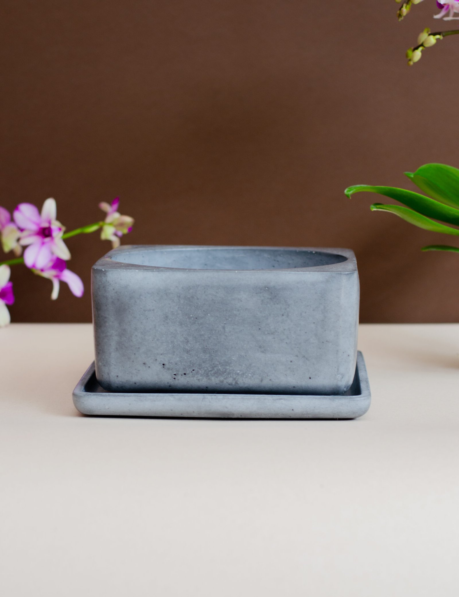 Presentada en una matera artesanal de concreto pulido, diseñada para resaltar la belleza natural de la planta con un toque contemporáneo y minimalista. Su acabado neutro y textura refinada aportan elegancia y equilibrio, convirtiéndola en una pieza perfecta para espacios sofisticados, regalos especiales o decoración premium.Una combinación única entre diseño artesanal y naturaleza viva.